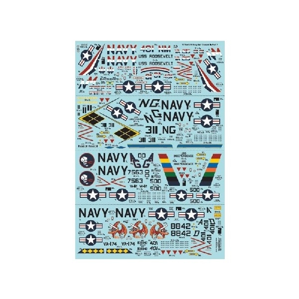 1/72 Colourful USN Vought A-7B/E Corsair II Part 2 (4) A-7B 154479 NM/401 VA-215 Barn Owls USS Franklin D.Roosevelt Bi-Centennial 1976; A-7E 156831 NG/331 VA-146 Blue Diamonds USS Constellation 1978; A-7E 157563 AG/500 VA-12 Clinchers USS Independence 1972; A-7E 158842 AD/401 VA-174 Hellrazors NAS Cecil Field, FL 1976