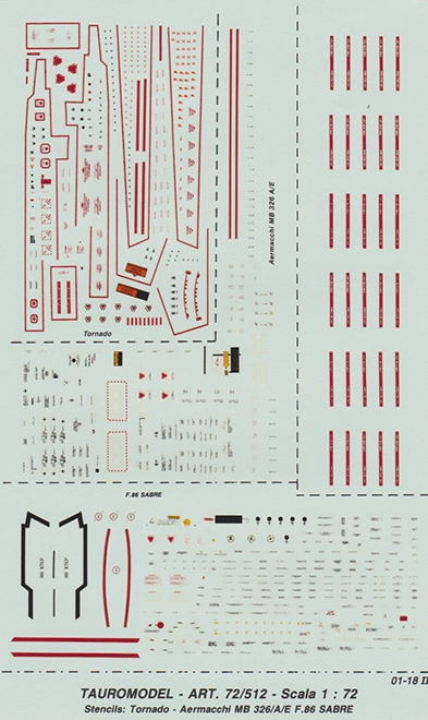 1/72 ITALIAN DATA STENCILLINGS FOR TORNADO, MB.326, F-86