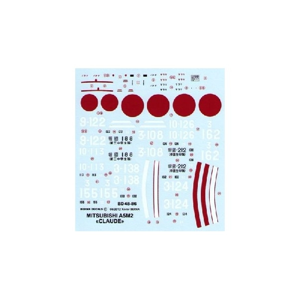 1/48 A5M2 Claude: Iwamoto (3-124) 1938, Aoki (3-108) 1938, Mori (3-155) 1938, Tsunoda (3-162) 1938, Yoshitomi (3-138) 1938, 14 Kokutai (9-122), Aiso (10-113) 1938, 15 Kokutai (10-126) 1938