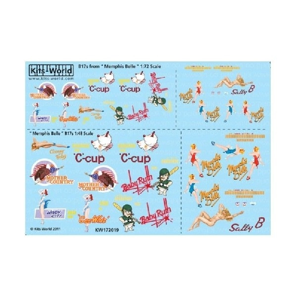 1/72 B-17 F/G Flying Fortress - Memphis Belle the movie nose art sheet including the famous 'Sally B'