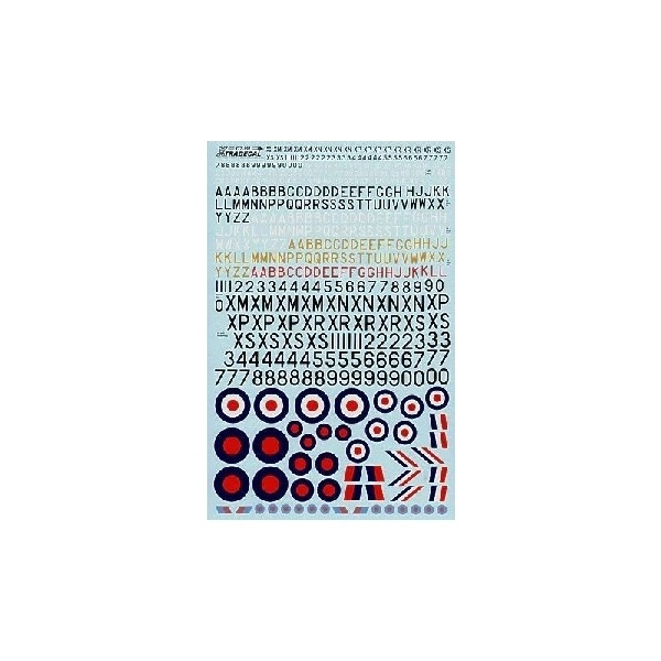 1/72 BAC Lightning Customising decal. Includes underwing and fuselage serial letters and numbers, fin code letters in black, white, yellow and red. Enables the production of almost any RAF Lightning. Squadron Markings not included. Standard