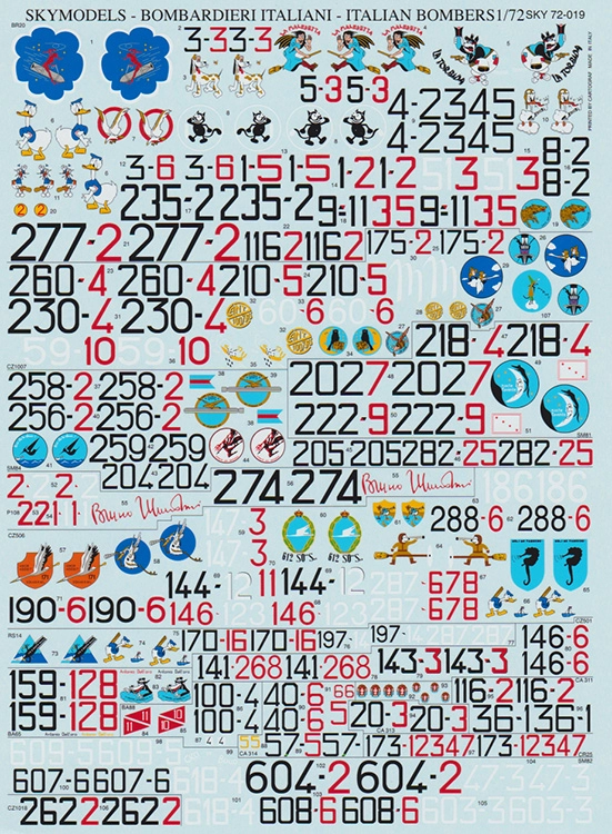 Fiat BR.20, CANT Z.1007, Savoia-Marchetti SM.84, Piaggio P.108, CANT Z.506, Fiat RS.14, CANT Z.501, Caproni Ca.311, CANT Z.1018, Breda Ba.88, Breda Ba.65, Caproni Ca.314, Caproni Ca.313, Caproni Ca.312, Fiat CR.25, Savoia-Marchetti SM.82, Savoia-Marchetti SM.81,